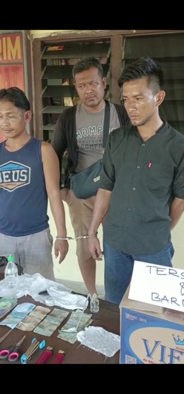 Setelah diketahui terduga empat orang dicurigai dan saat itu sedang asyik duduk di Areal Kebun Karet. Polisi langsung mengamankan terduga.