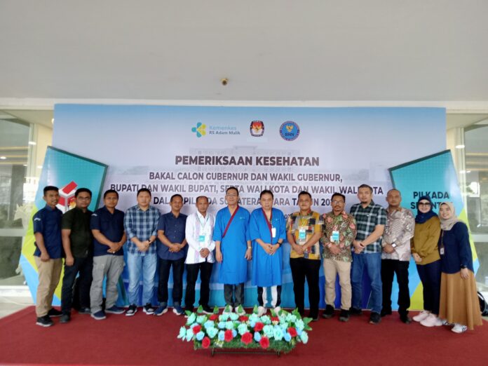 RROL.ID, Tapanuli Selatan – Badan Pengawas Pemilihan Umum Kabupaten Tapanuli Selatan melakukan pengawasan terhadap proses pemeriksaan kesehatan bakal pasangan calon Bupati Tapanuli Selatan pada Pemilihan Tahun 2024.di Rumah Sakit Umum (RSU) H. Adam Malik Medan, Sabtu (31/08/2024)