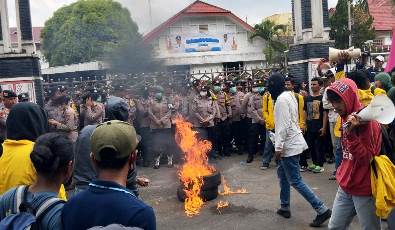 Sementara, Kapolres mengatakan agar mahasiswa menyampaikan aspirasi di depan kantor DPRD. Bukan di ruang gabungan fraksi dan massa aksi menolak. Bahkan, membacakan tuntutan yang diantaranya, tolak UU TNI Pasal 47 tentang penambahan empat posisi baru yang dapat diisi prajurit aktif, dan pasal 53 tentang usia pensiun TNI. Kemudian, desak DPR RI membatalkan UU TNI serta kecam TNI dan Polri yang mengintervensi masyarakat.