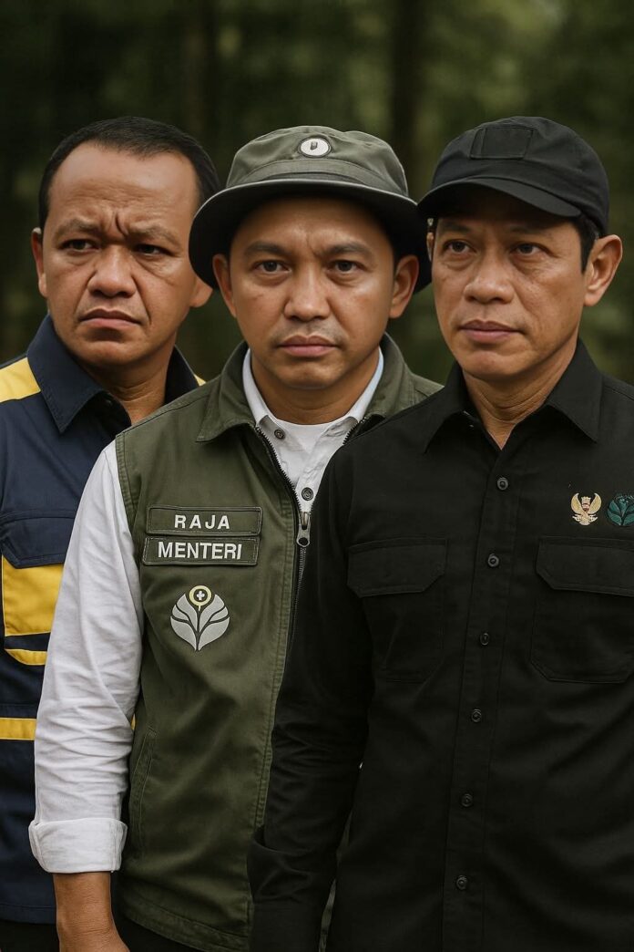 Greenpeace tidak butuh metafora rumit untuk menunjuk siapa yang harus bertanggung jawab. Mereka sebut saja tiga nama bak pengumuman juara lomba karaoke, Raja Juli Antoni, Menteri Kehutanan, penjaga hutan yang hutannya kabur duluan. Bahlil Lahadalia, Menteri ESDM, penerbit izin tambang yang mungkin lebih gesit dari admin e-commerce. Hanif Faisol, Menteri Lingkungan Hidup, penjaga AMDAL yang filternya sudah bocor sebesar sumur bor.