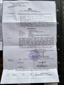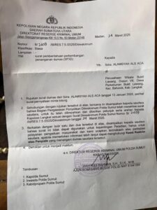 Surat di buat oleh Polres Langkat untuk menegoisasi perdamaian