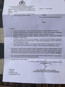 Surat SP3D dari Propam Mabes Polri