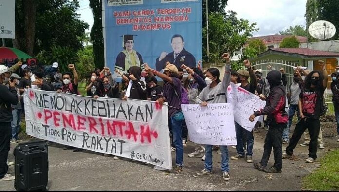 RumahRakyatOnline.id, Pematangsiantar – Puluhan massa Gerakan Rakyat Melawan (Gerilyawan) melakukan Aksi di Kantor DPRD Kota Pematangsiantar, terkait Kelangkaan Minyak Goreng, Kenaikan PPN dan Wacana Jabatan Presiden 3 Periode. Kamis (21/4/2022).
