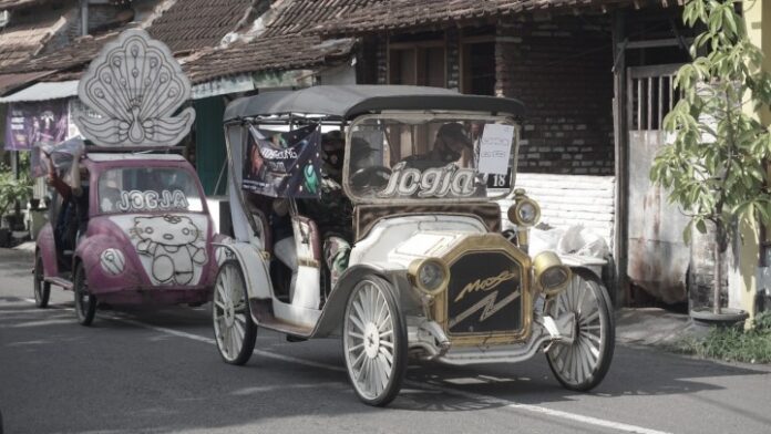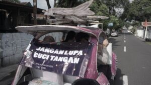 RumahRakyatOnline.id, Jokyakarta – Tim KKN-PPM UGM, bersama dengan Puskesmas, Koramil, dan Polsek Kraton melakukan sosialisasi sekaligus patroli protokol kesehatan dengan pendekatan yang unik, yakni sambil menaiki ‘odong-odong’. Odong-odong telah menjadi ikon penting bagi Alun-Alun Selatan Yogyakarta.