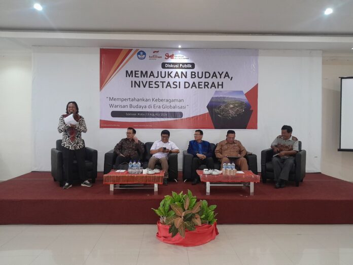 RROL.ID, Samosir – Kementerian Pendidikan dan Kebudayaan bekerja sama dengan Kemitraan Patnership dan Perkumpulan Suluh Muda Inspirasi (SMI) gelar diskusi publik Memajukan Budaya Investasi Daerah mempertahankan keberagaman warisan budaya di Era Globalisasi, di Aula JTS Hotel Parbaba, Kabupaten Samosir, Selasa (13/7/2024) sekira pukul 09.30 WIB.
