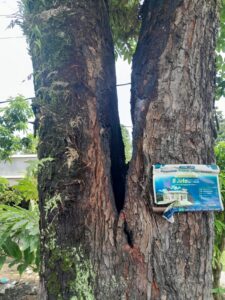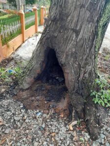 Diketahui sebuah pohon hutan pelindung lalulintas di depan jalan Balata-Parapat tepat di seberang depan usaha Peti Mati UD Cipta Gesman Balata, sejak Selasa sore mengeluarkan asap terbakar di bagian tengah kayu tersebut, diduga sengaja dibakar seorang warga sekitar.