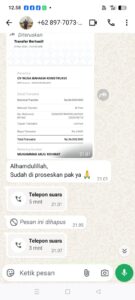 Pihak perusahaan Samber Jaya menjawab “boleh saja, tapi sebentar ya”. tidak berapa lama pihak perusahaan atau korban mencoba cek transaksi keluar dan masuk ternyata tidak ada masuk dana tersebut. alasan terduga penipu “mungkin proses pak”. sementara pihak BBM sudah menunggu bisa diduluankan pakai dana pribadi pak? kirim ke nomor 1710017860738 atas nama Sri Dewi Bank Mandiri. kata terduga penipu.